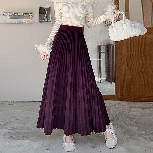 - 다이뻐 가을 겨울 결혼식하객패션 고급원단 편안한 밴딩 모직 주름 플리츠 롱스커트