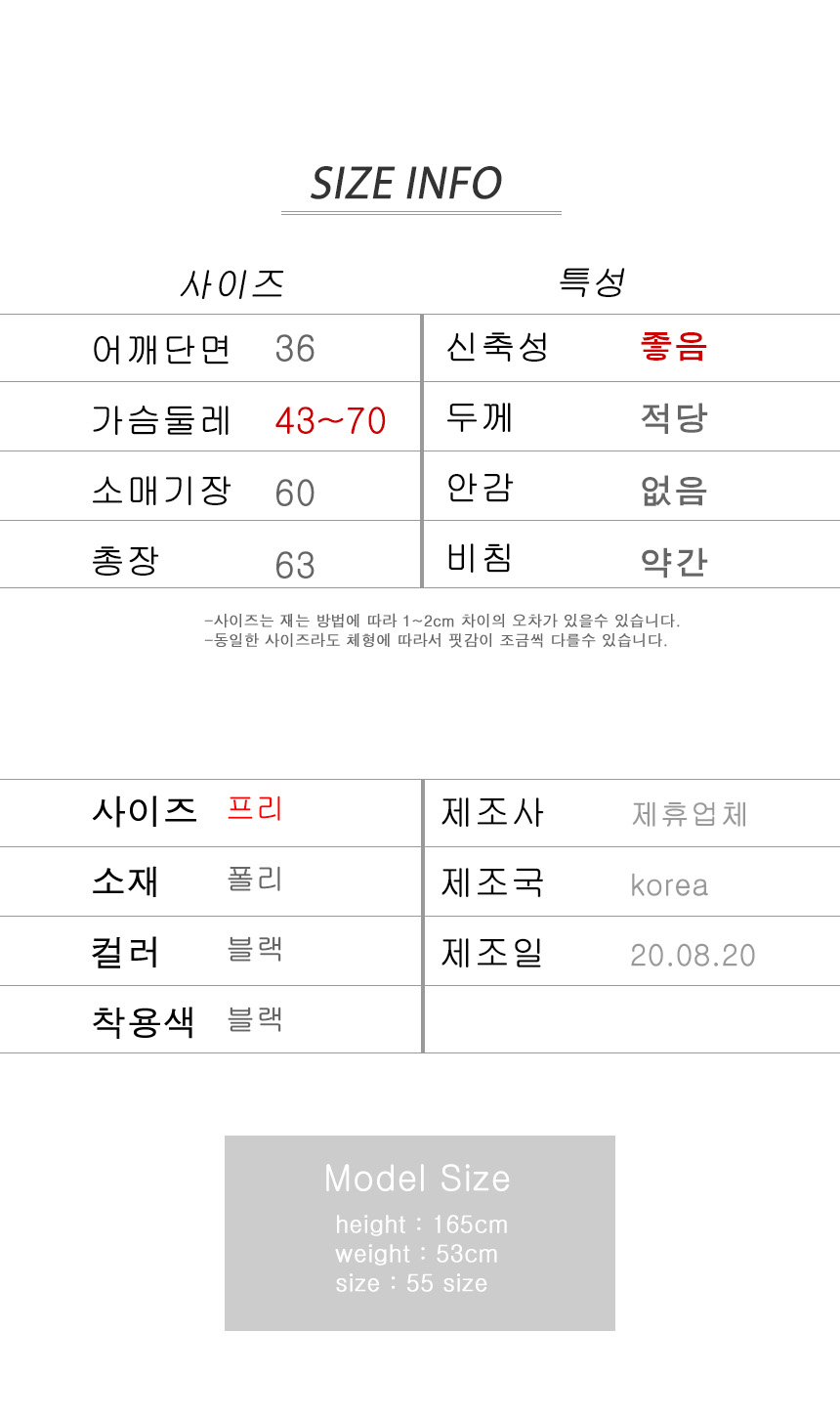 ※ 상품사이즈 치수는 재는 방법과 위치에 따라 1~3cm 오차가 있을 수 있습니다.