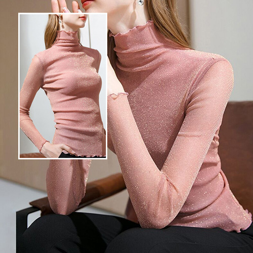 - 다이뻐 44~88 빅사이즈 실버 반짝이 샤이니 정장 반하이넥 폴라 레이스 시스루 블라우스