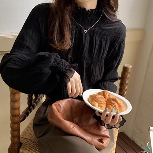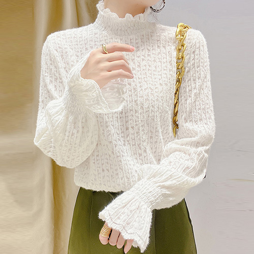 - 다이뻐 빅사이즈 44~88 부드러운 기모 여성스러운 귀여운 반하이넥 반목 프릴 레이스 블라우스