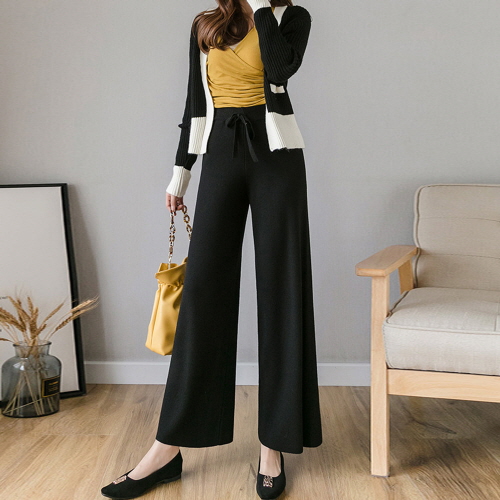 - 다이뻐 당일배송 부드러운 신축성좋은 봄 간절기 겨울 따뜻한 리본 니트 밴딩 와이드팬츠