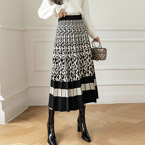 - 다이뻐 44~77 프렌치 신축성좋은 하객패션 따뜻한 고급 호피 주름 플리츠 니트 롱스커트