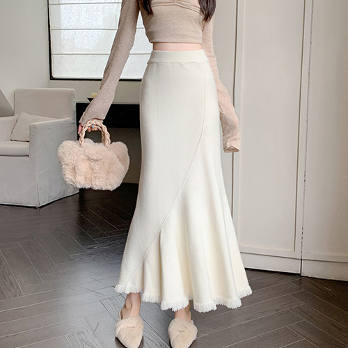 - 다이뻐 가을겨울 슬림 에스라인 키큰여자 인어스타일 머메이드 니트 롱스커트
