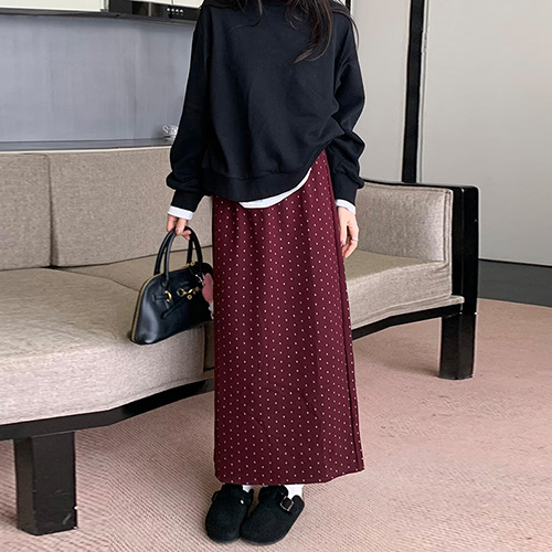 - 다이뻐 가을겨울 밴딩 따뜻한 뒷밴딩 땡땡이 도트 H라인 롱스커트