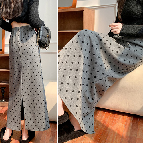 - 다이뻐 데일리 케주얼 따뜻한 땡땡이 도트 일자 H라인 롱스커트