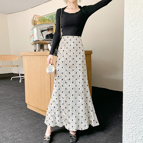 - 다이뻐 가을겨울 밴딩 따뜻한 뒷밴딩 땡땡이 도트 H라인 롱스커트