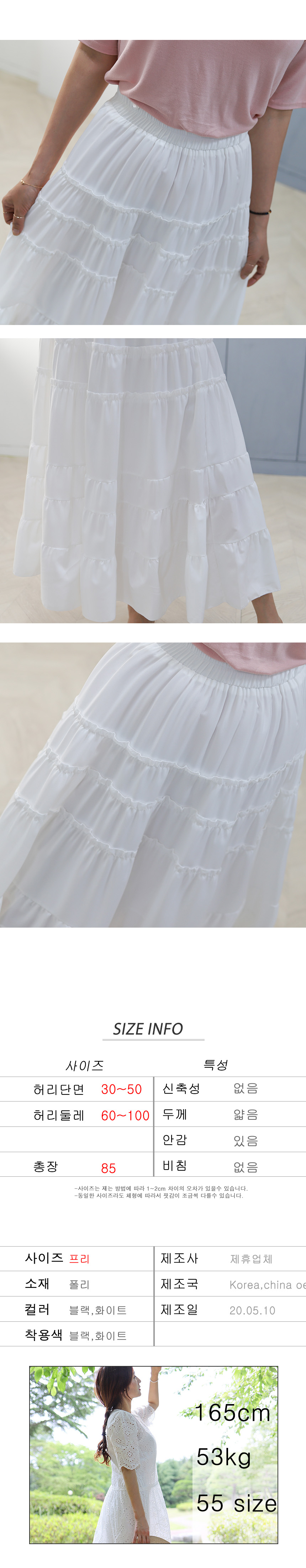 다이뻐 편안한 밴딩 우아 풍성한 프릴 셔링 코튼 A라인 플레어 면 5단 캉캉 롱스커트 여름휴가패션 하객패션